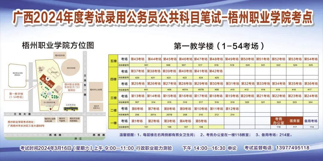 廣西2024年度考試錄用公務員選調生)公共科目筆試梧州考點指引