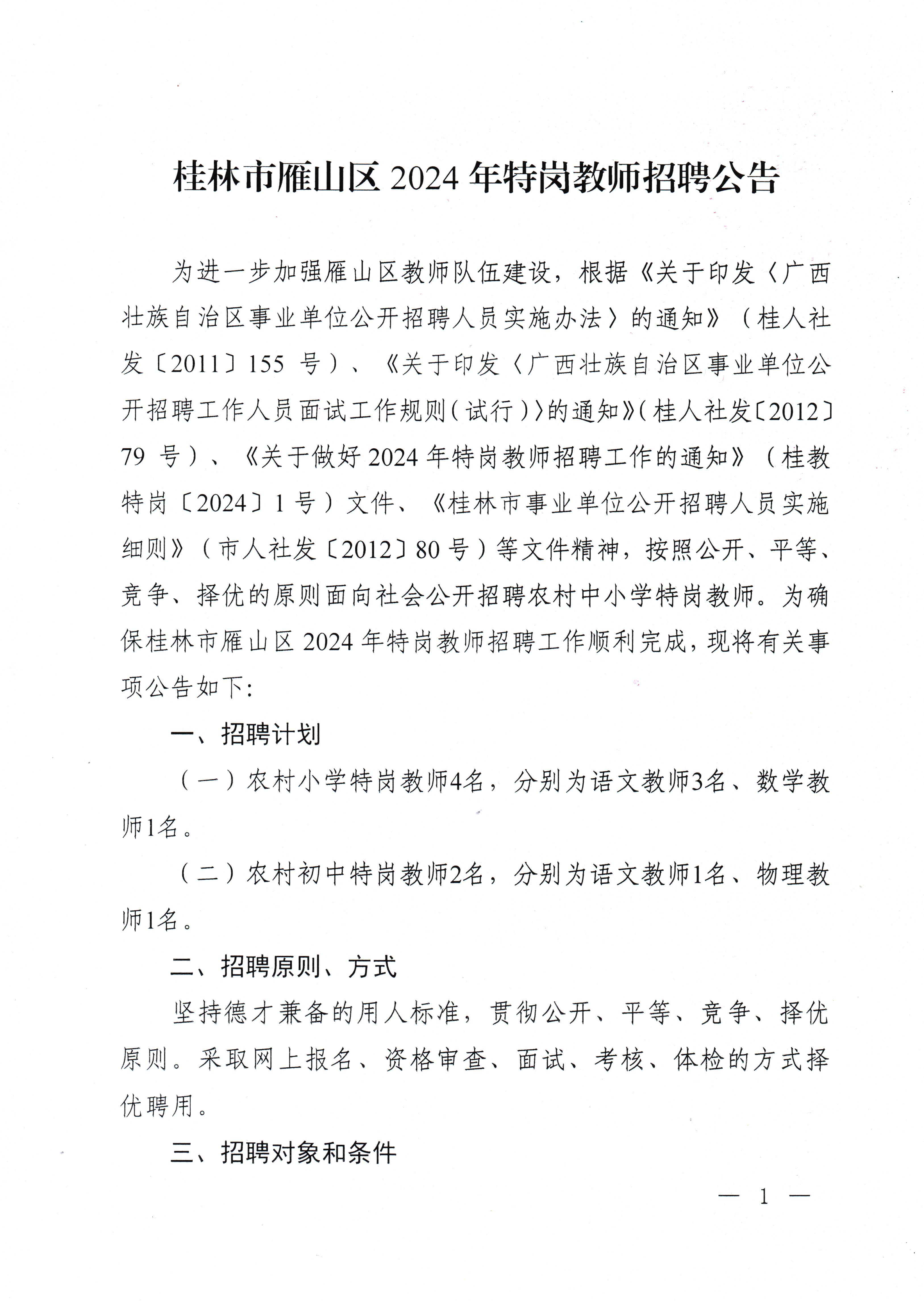 【教育局公告】桂林市雁山區2024年特崗教師招聘公告