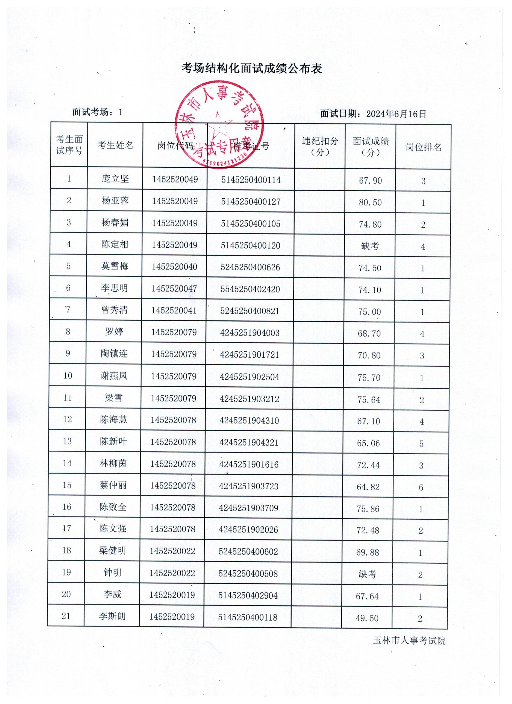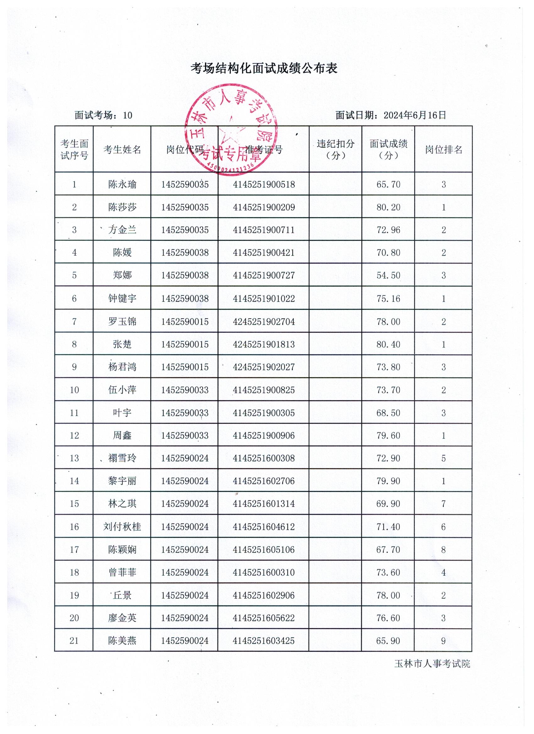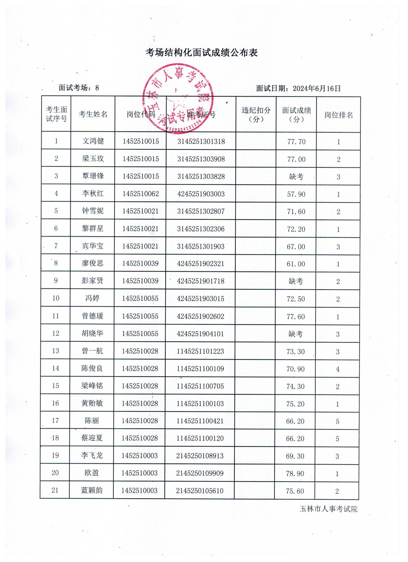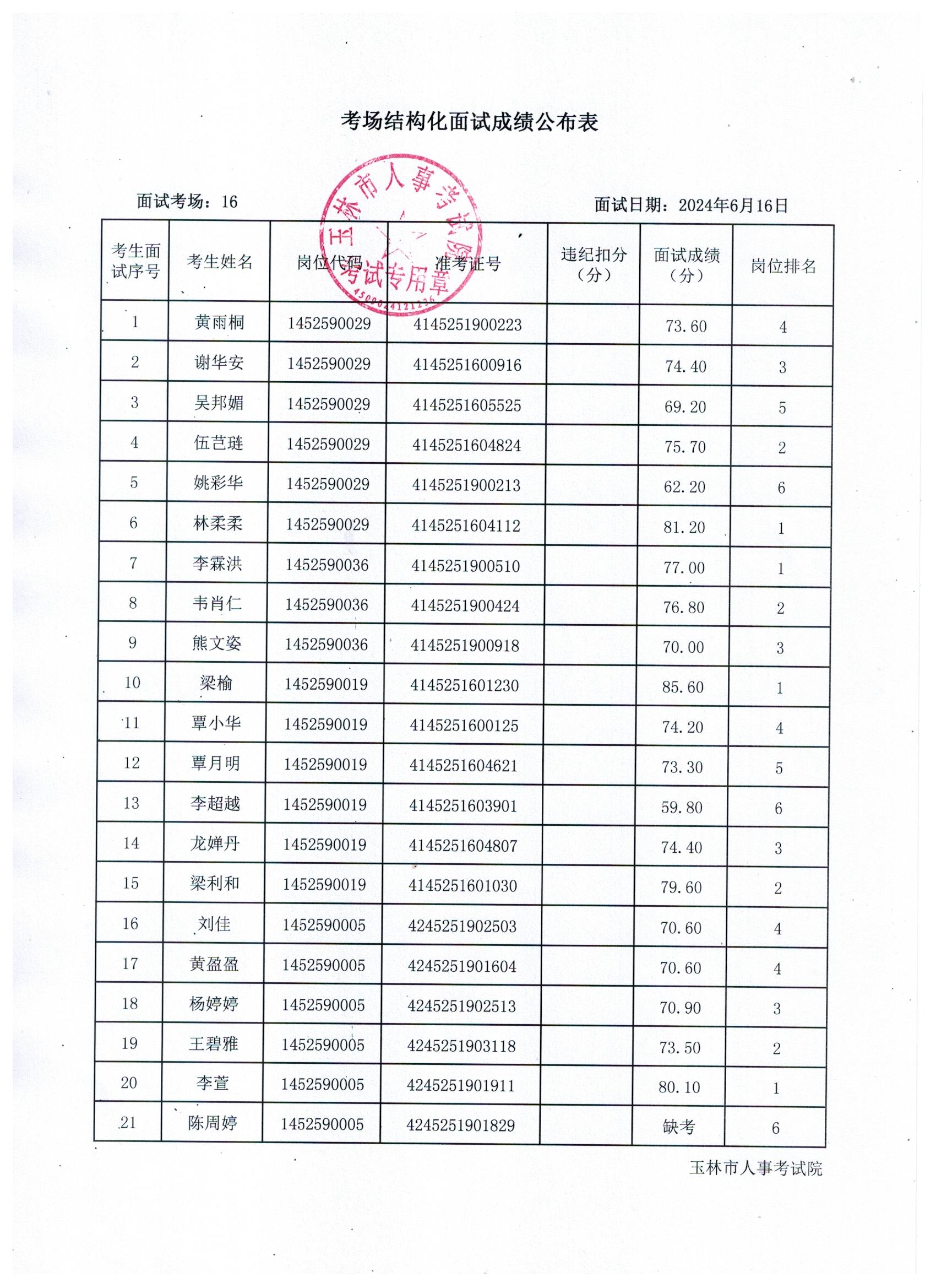 原文標題:2024年玉林市直(含玉州區、福綿區、玉東新區)事業單位公開招聘人員面試成績公布(6月16日)