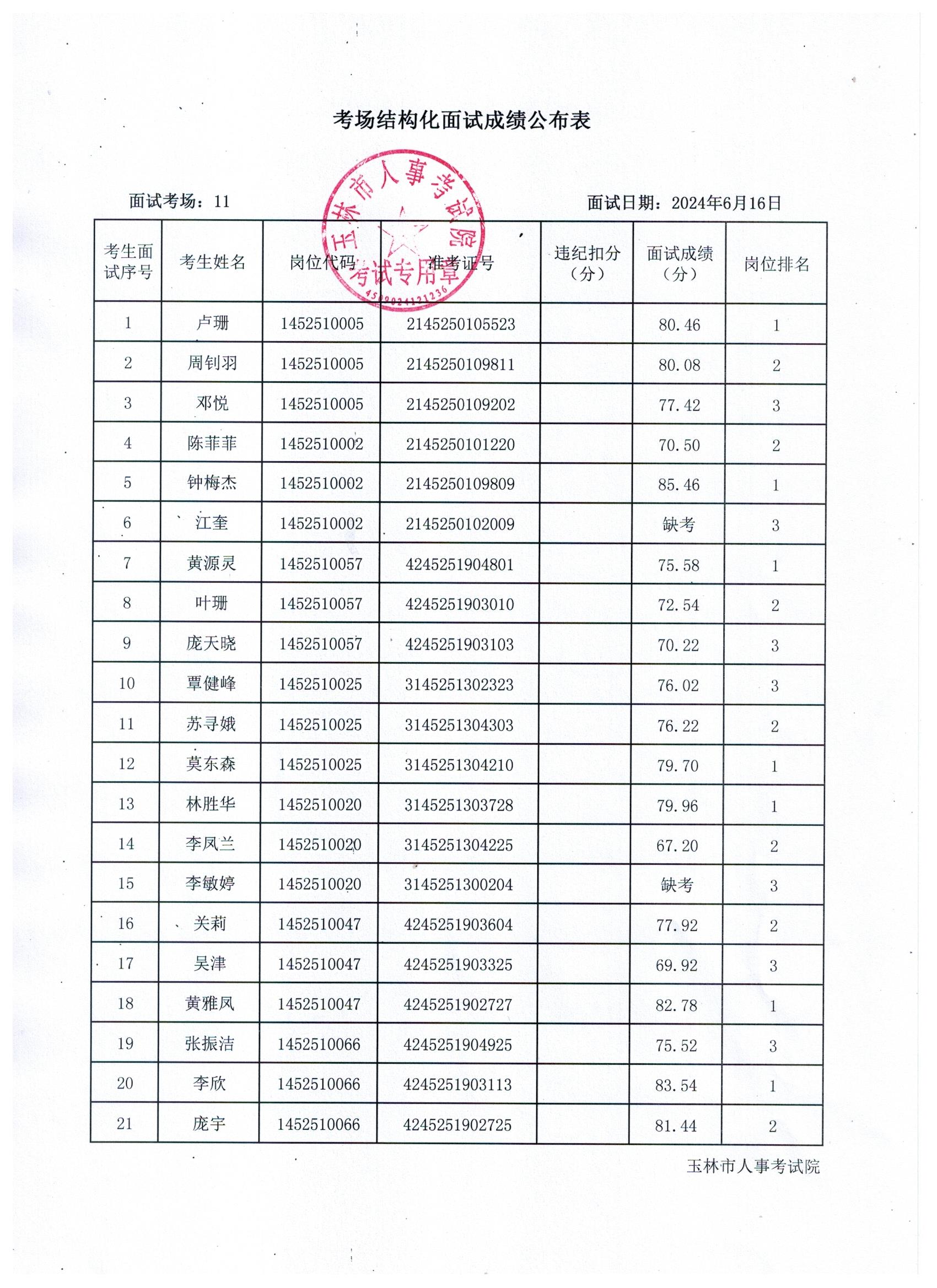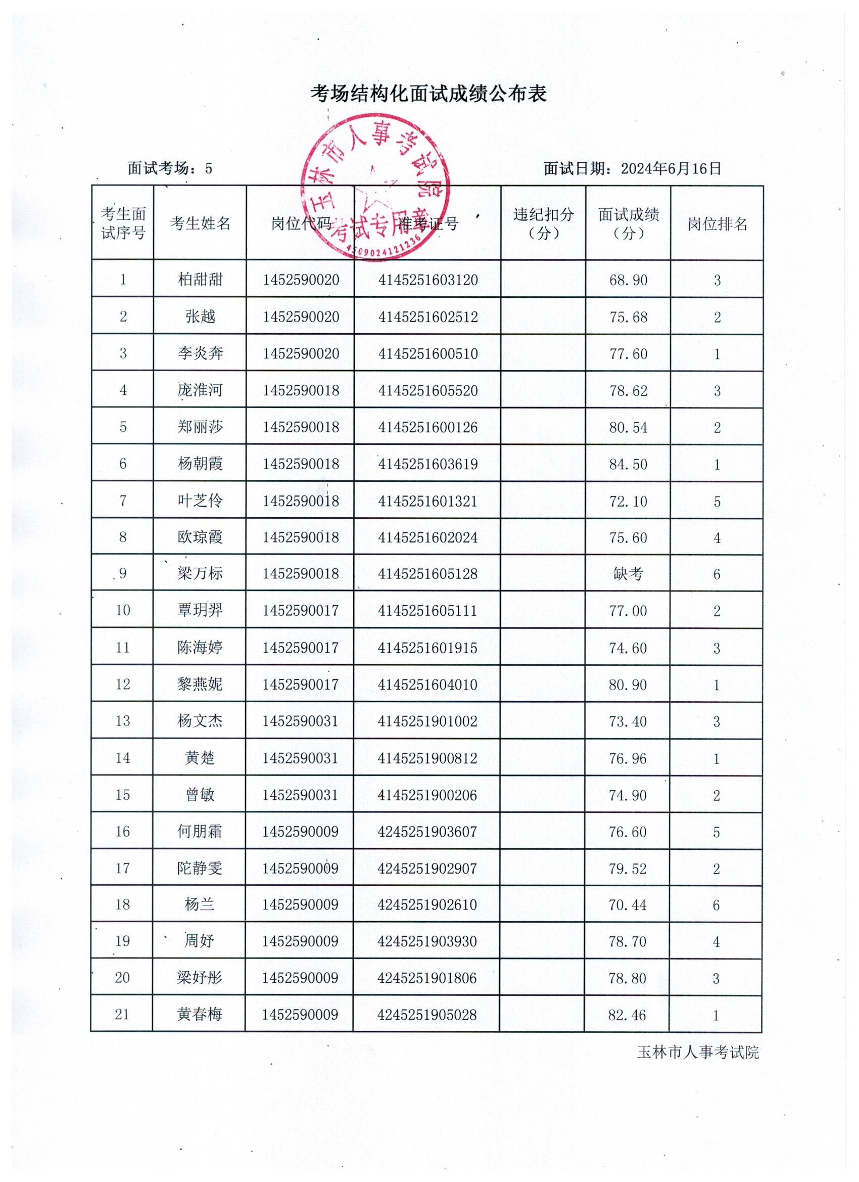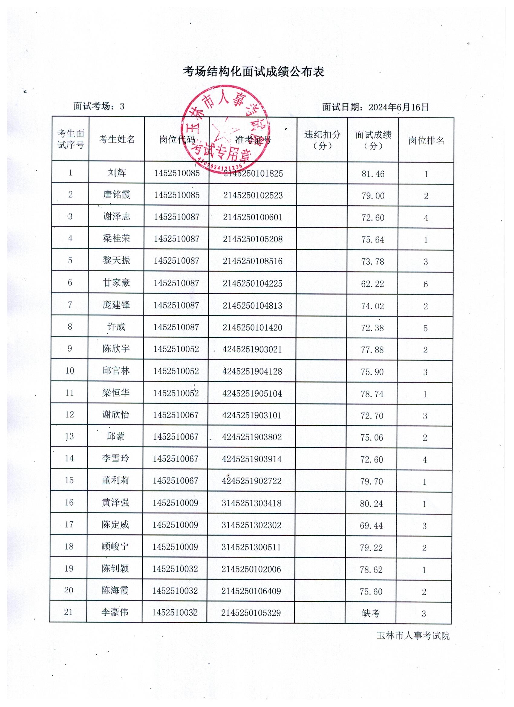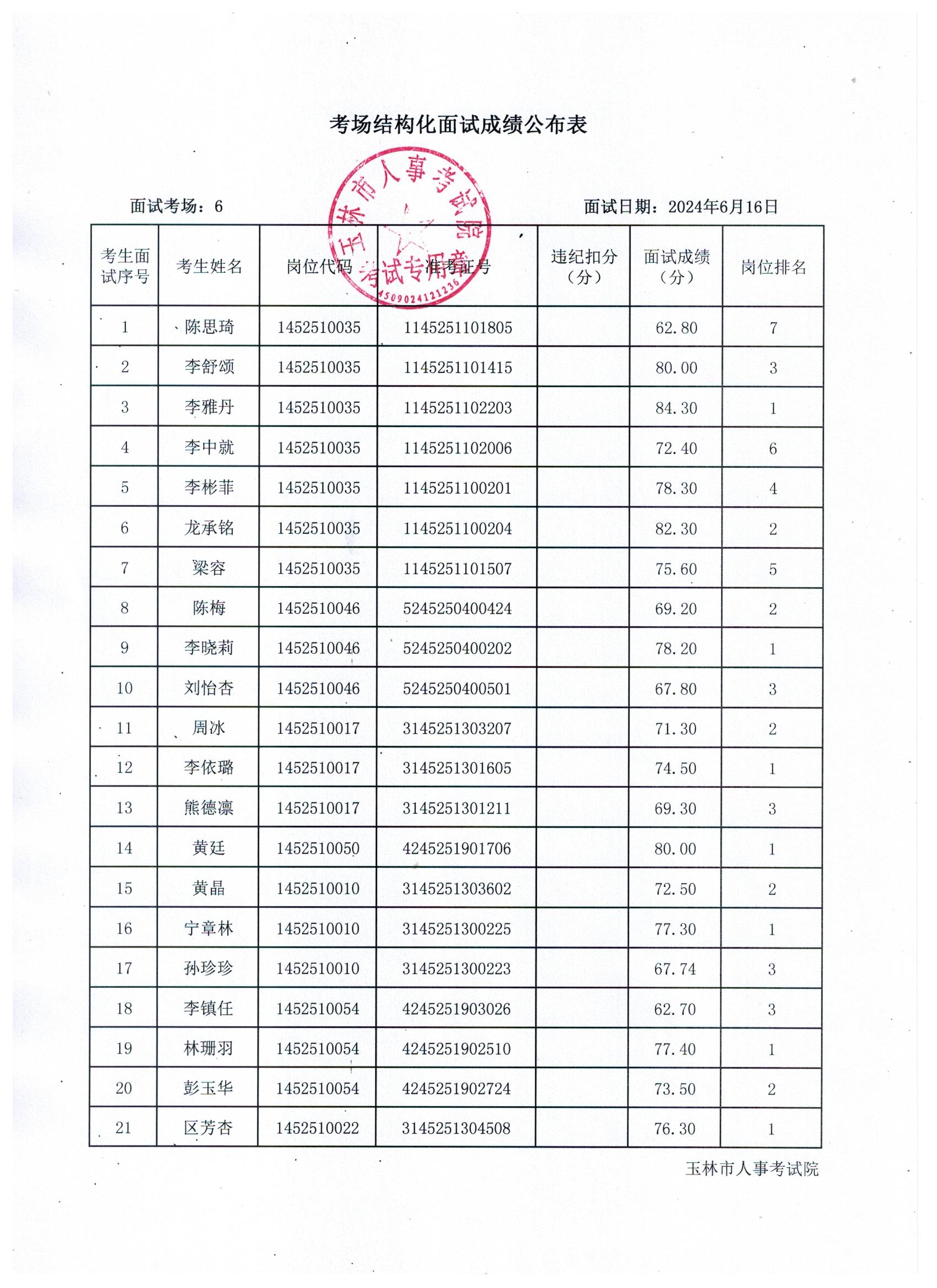 原文標題:2024年玉林市直(含玉州區、福綿區、玉東新區)事業單位公開招聘人員面試成績公布(6月16日)