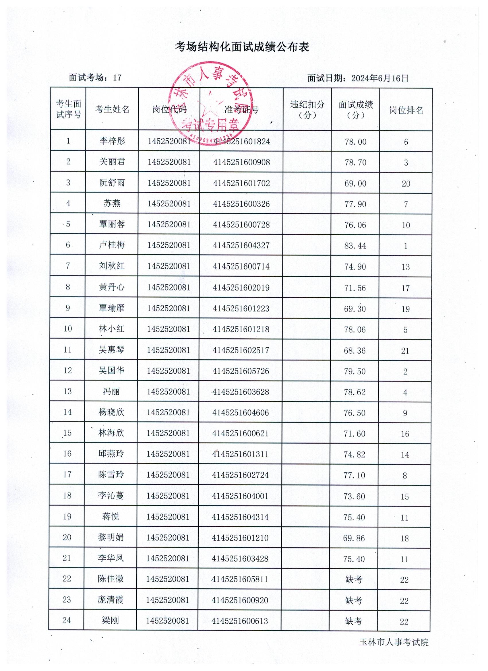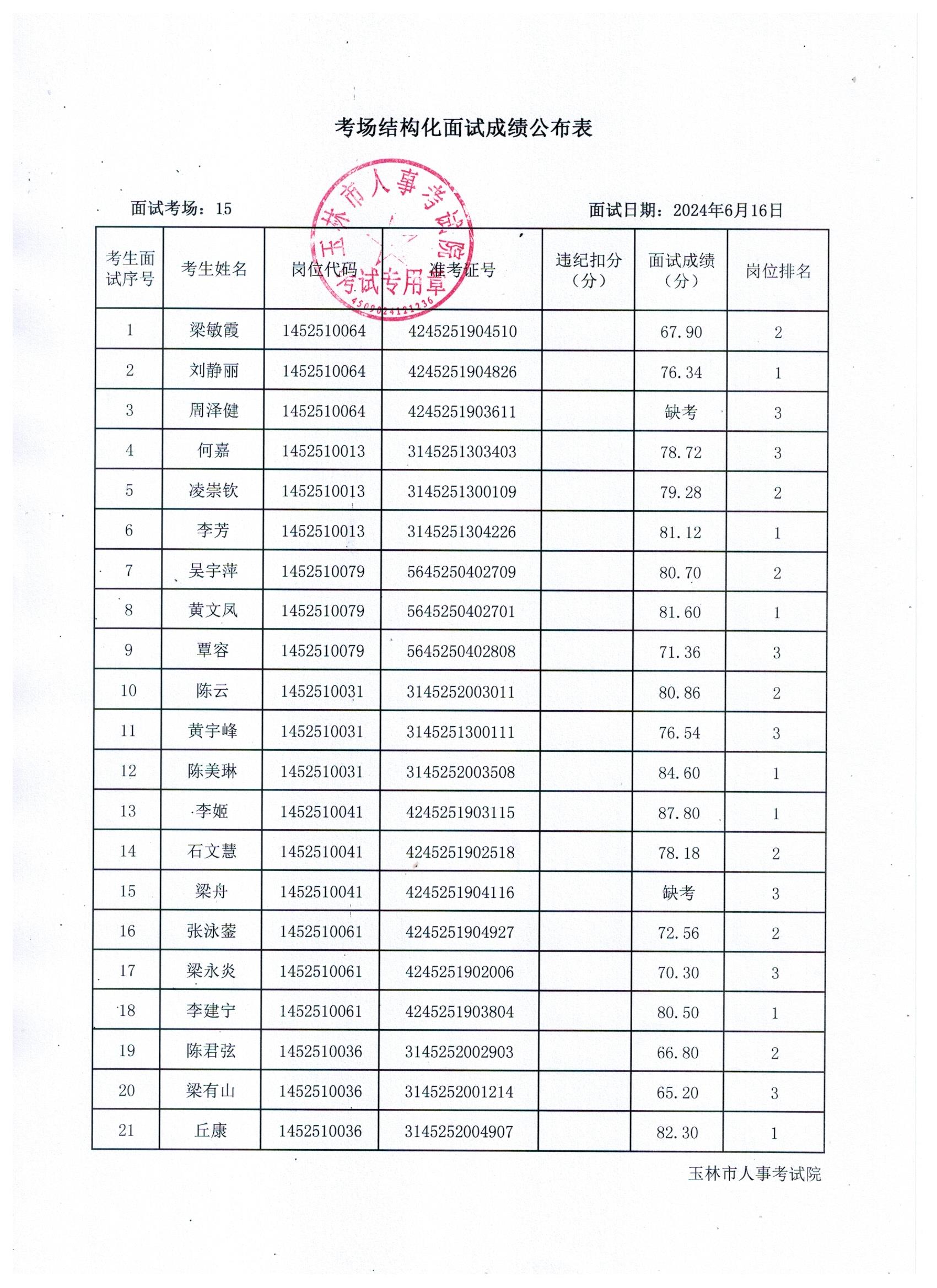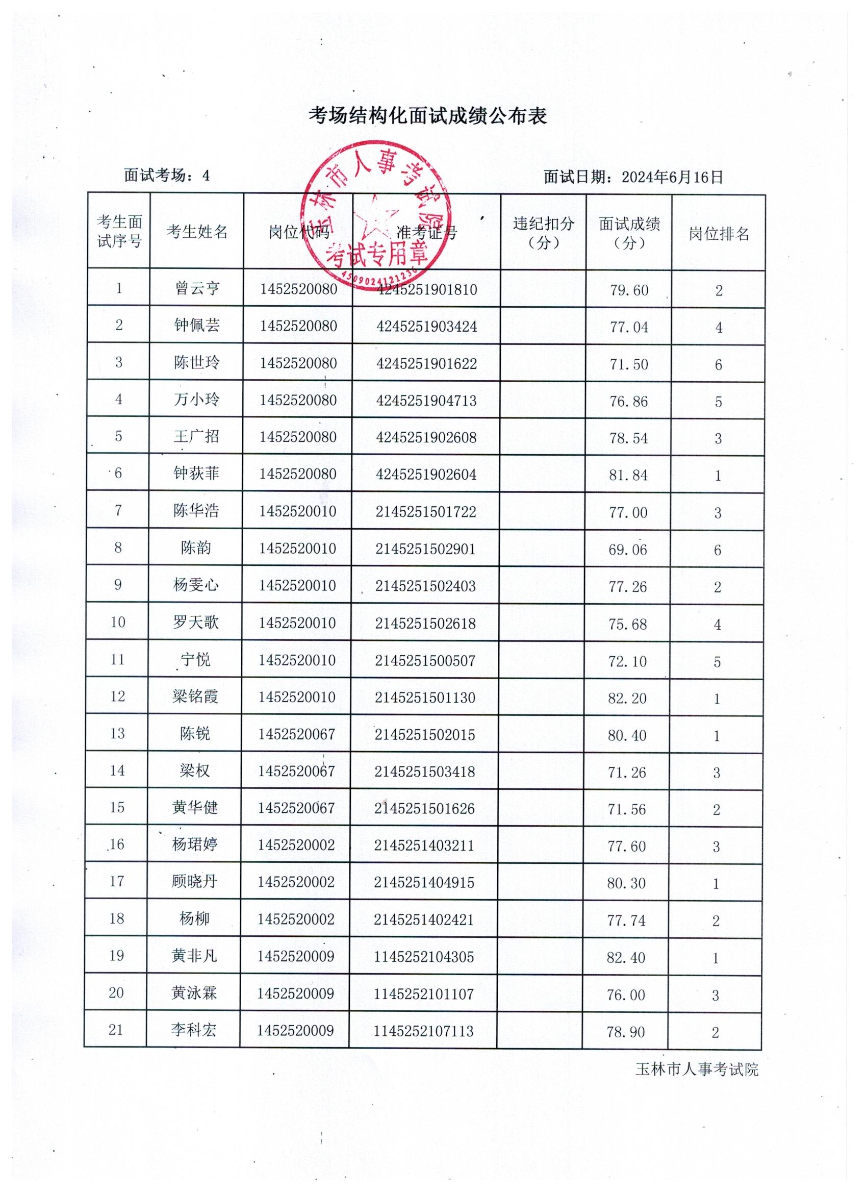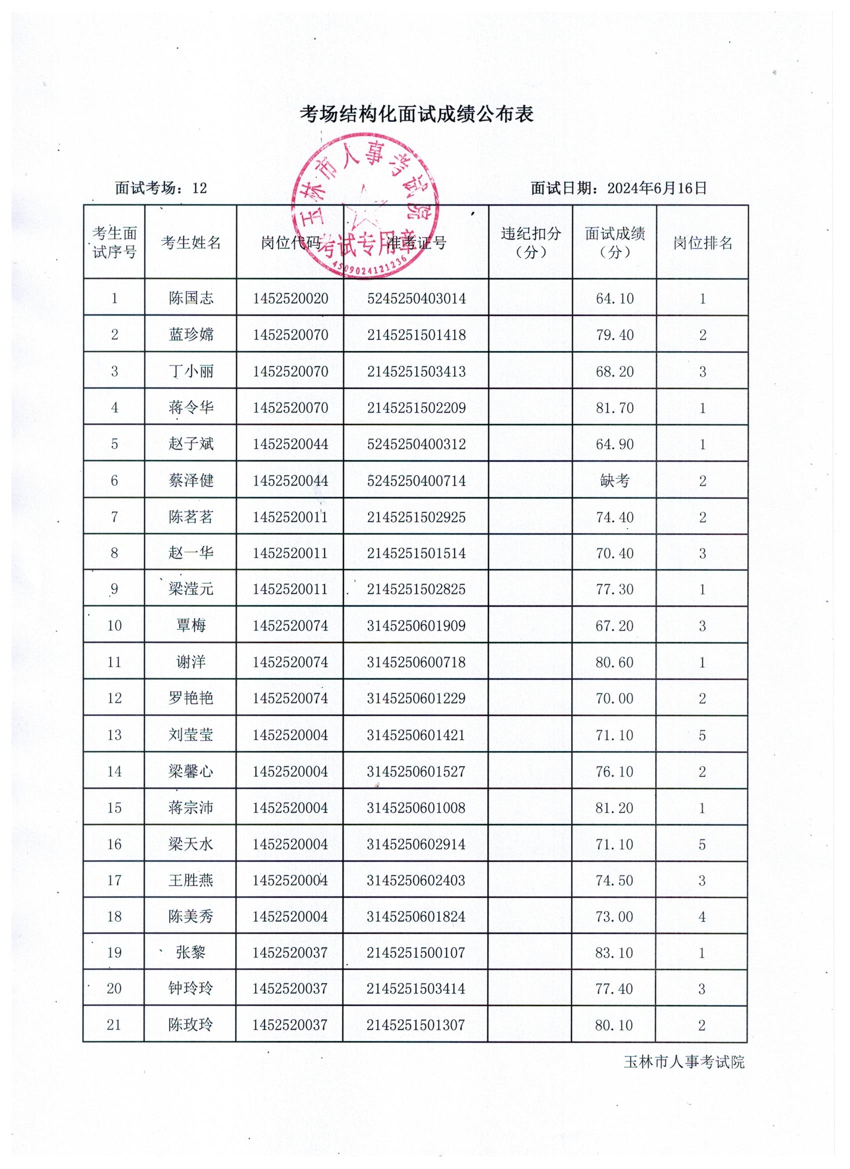 原文標題:2024年玉林市直(含玉州區、福綿區、玉東新區)事業單位公開招聘人員面試成績公布(6月16日)