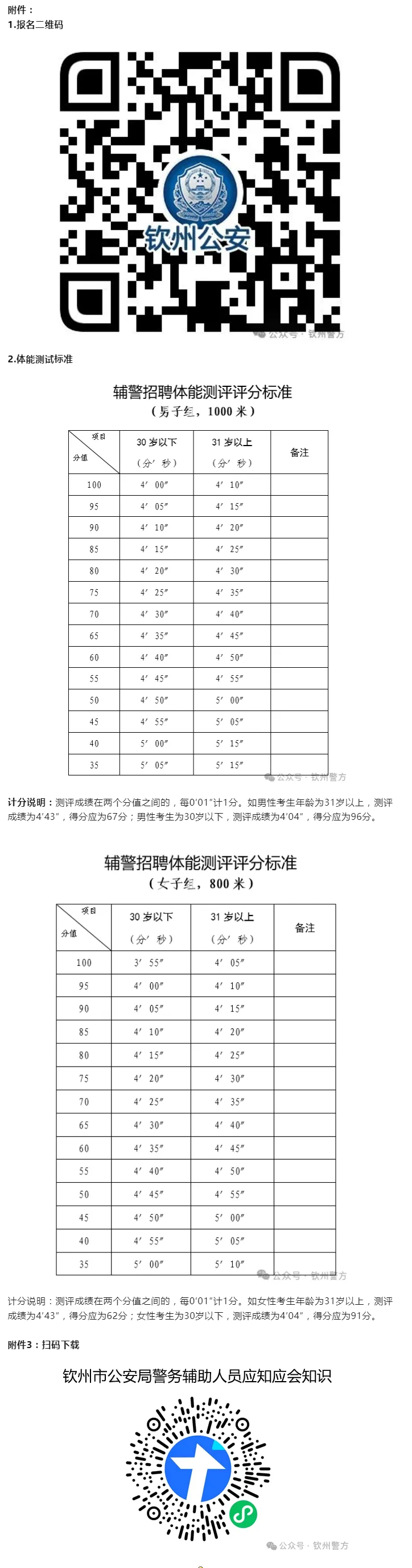 5.考試時間:報名結束后5-10天將組織開展測試考試。請考生注意通過招聘專用QQ群和微信公眾號“欽州警方”查收考試通知,做好考前準備。