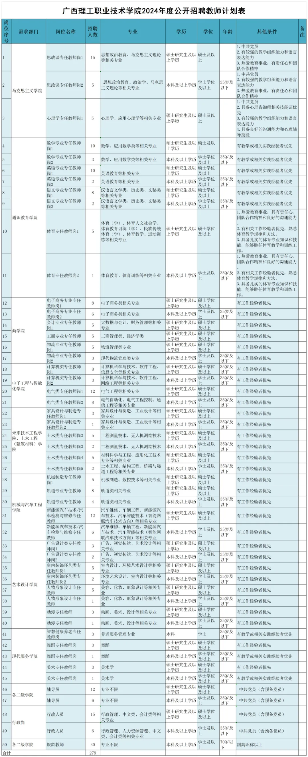 2024年廣西理工職業技術學院招聘教師279人