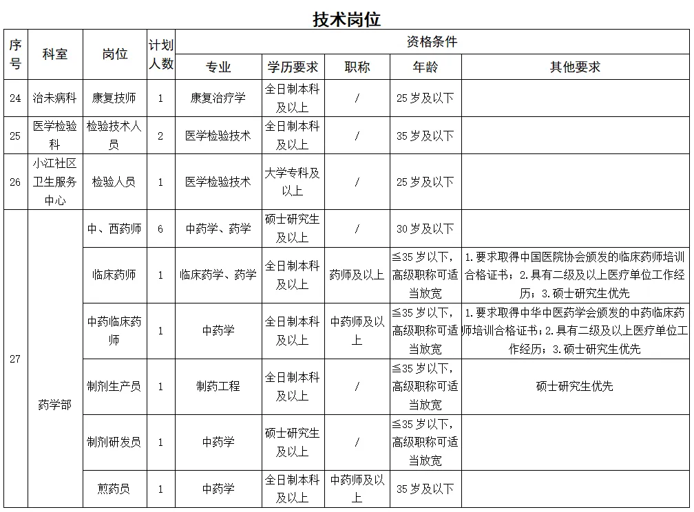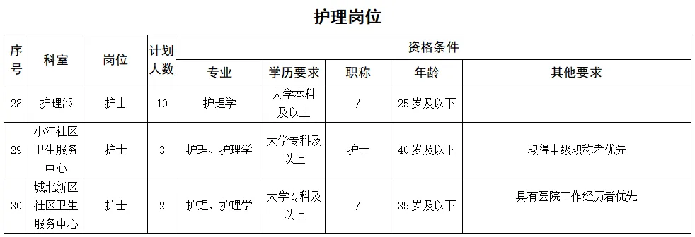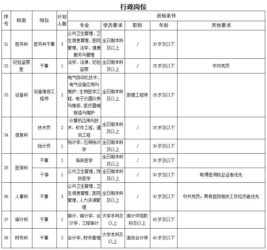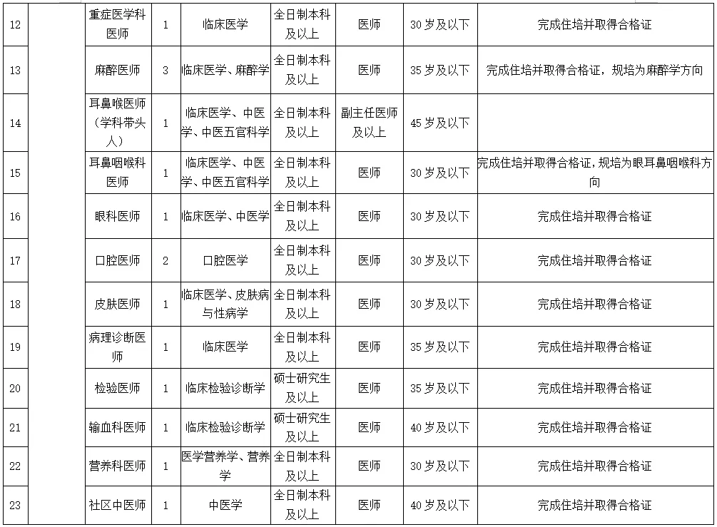 備注:醫學類碩士研究生及以上學歷、醫學類副高及以上職稱者不受招聘專業及名額限制。