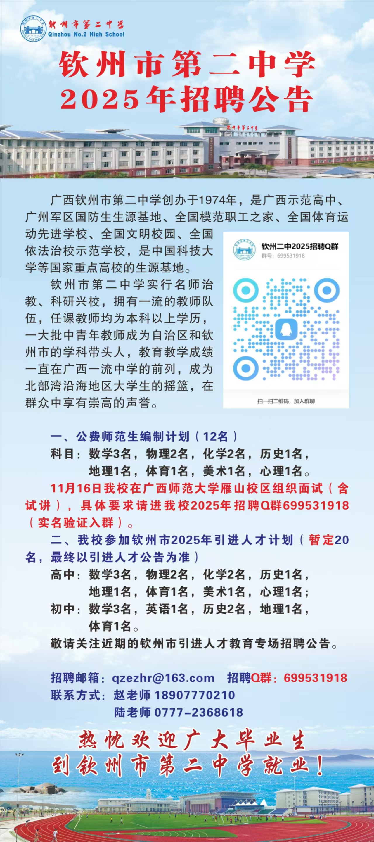 2025年欽州市第二中學招聘32人