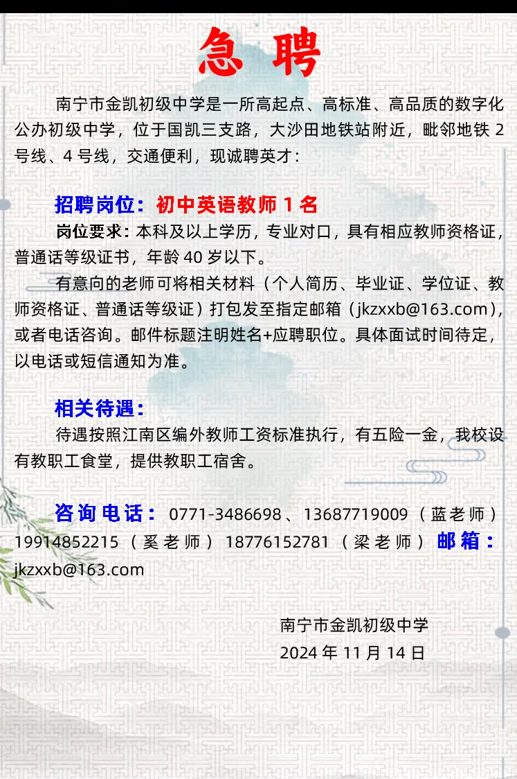 作者:志公教育     來源:南寧市金凱初級中學     時間:2024-11-14 11:04:49     閱讀: