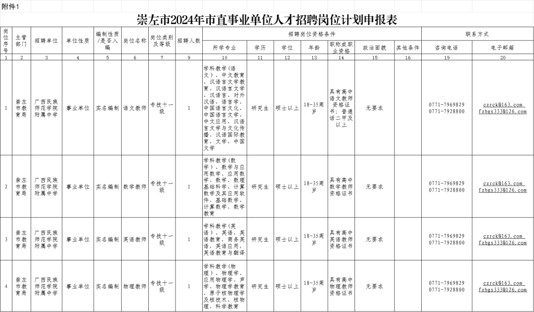 2025年廣西民族師范學院附屬中學教師招聘4人