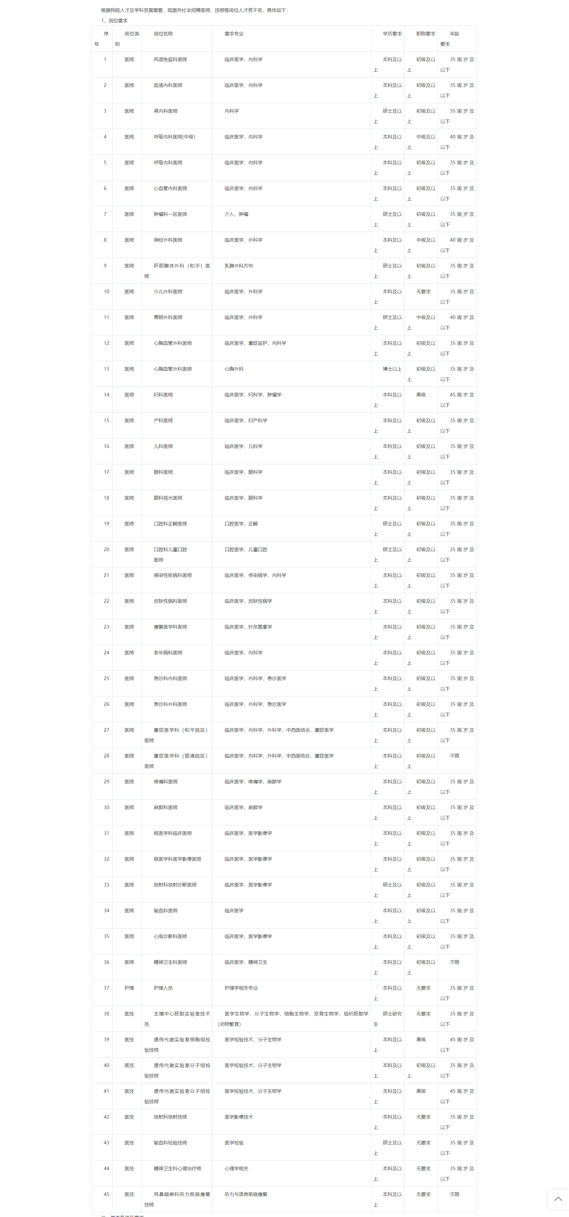根據我院人才及學科發展需要,現面向社會招聘醫師、技師等崗位人才若干名,具體如下: