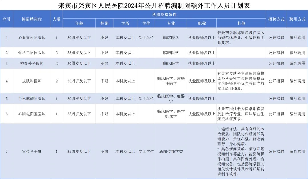 原文標題:速看!來賓市興賓區人民醫院招聘編制限額外工作人員10名