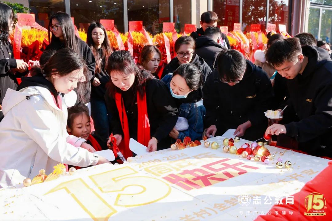 這個(gè)蛋糕不僅象征著志公走過的15個(gè)輝煌歲月,更代表了志公未來更加美好的明天。在場(chǎng)的所有員工都分享了這份喜悅和甜蜜,共同祝愿志公教育越來越好。