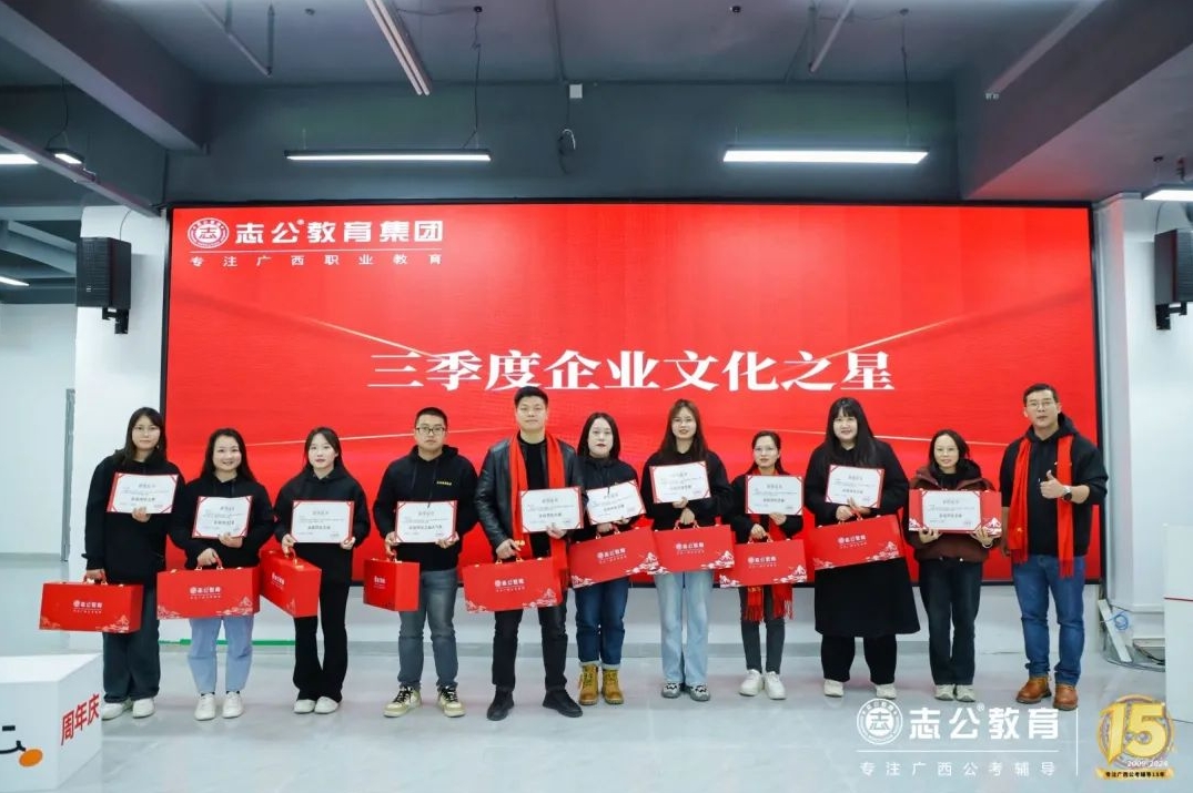 一直以來,志公教育都秉承著“12條企業(yè)文化核心價(jià)值觀”,包括客戶原則——以學(xué)員為中心”、“管理原則——人人都是經(jīng)營者”等12項(xiàng)原則,扎根廣西本土公考,全力服務(wù)每一位志公學(xué)員。在董事長李勇的正確領(lǐng)導(dǎo)下,在廣大學(xué)員的支持下,在全體員工的共同努力下,志公教育從無到有,從小到大,不斷夯實(shí)發(fā)展基礎(chǔ),贏得了客戶的信賴和品牌形象。全體志公人將堅(jiān)定目標(biāo)齊奮斗、凝心聚力再出發(fā),為志公高質(zhì)量發(fā)展再立新功。