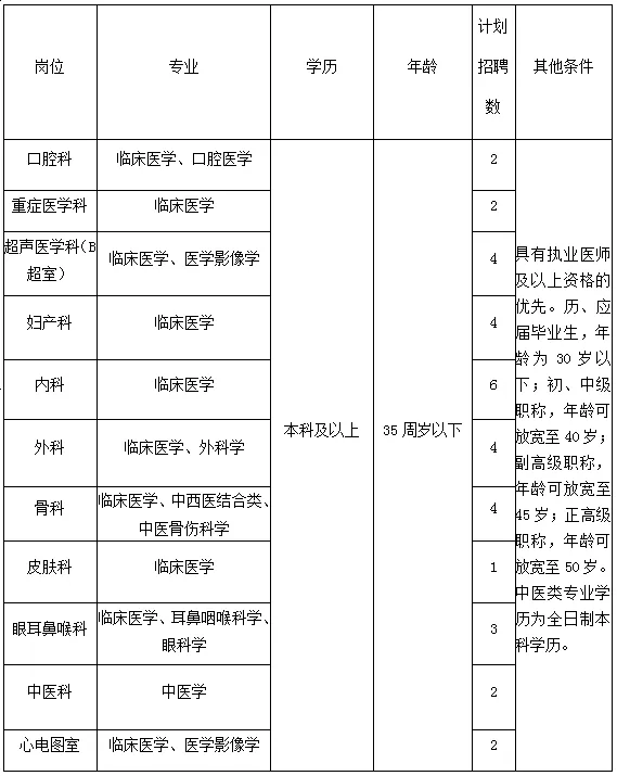 為加快醫院人才隊伍建設步伐,優化人才隊伍建設,提高人才隊伍素質,儲備優秀衛生專業技術人才,以滿足我院各科建設發展需要。特面向社會公開招聘臨床醫師。