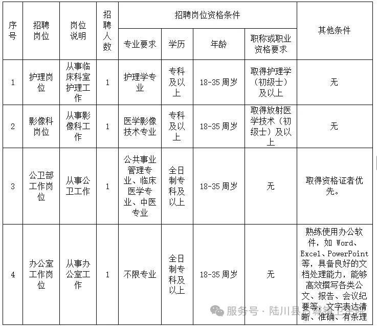2、報名地點:陸川縣古城鎮衛生院綜合大樓六樓行政辦公室。