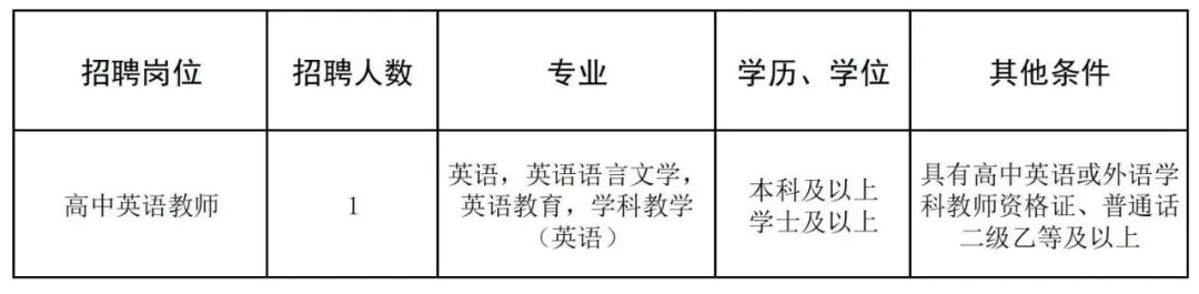 根據發展需要,學校擬招聘高中英語頂崗教師共1人,具體招聘信息如下: