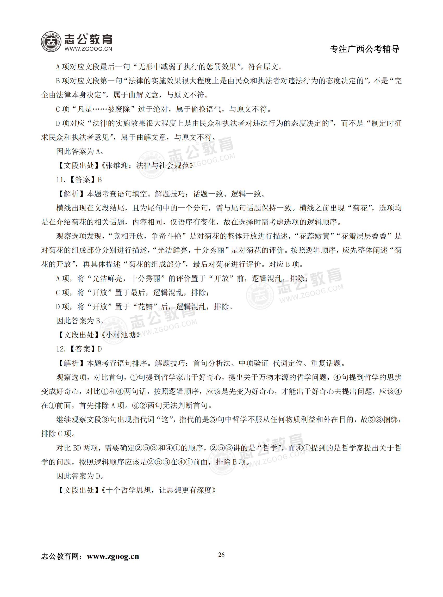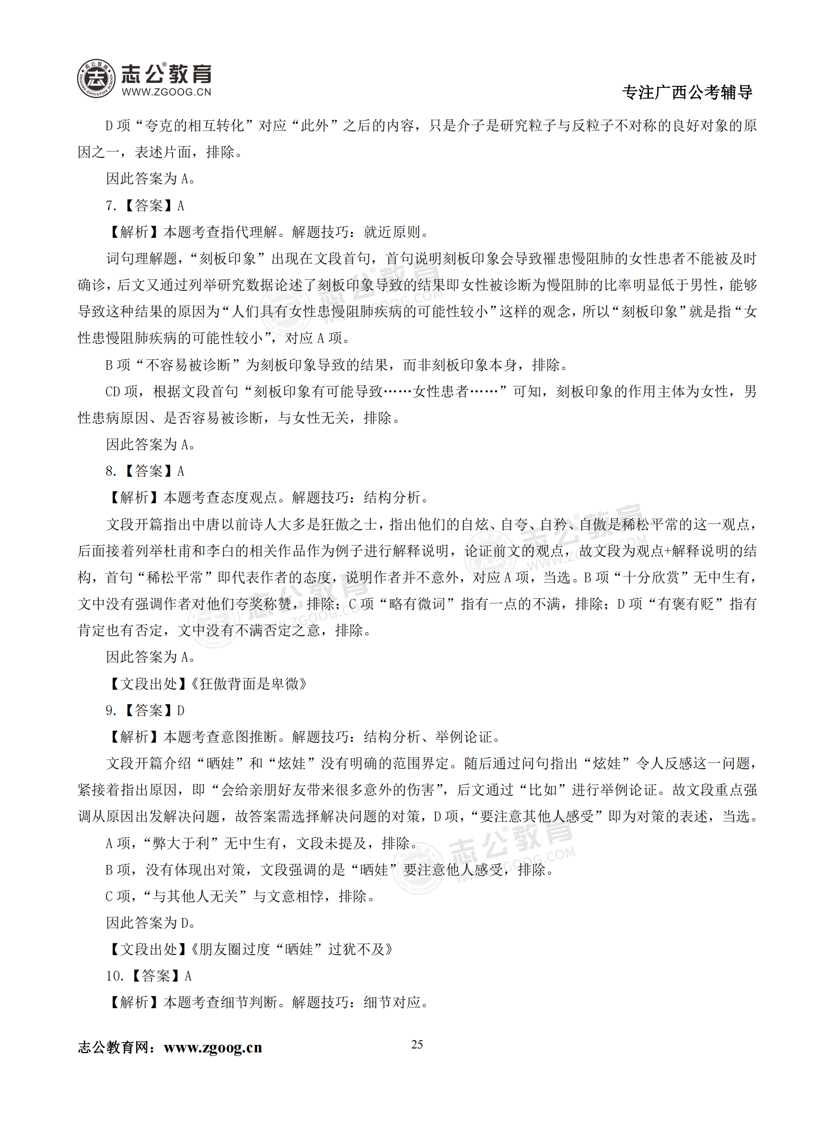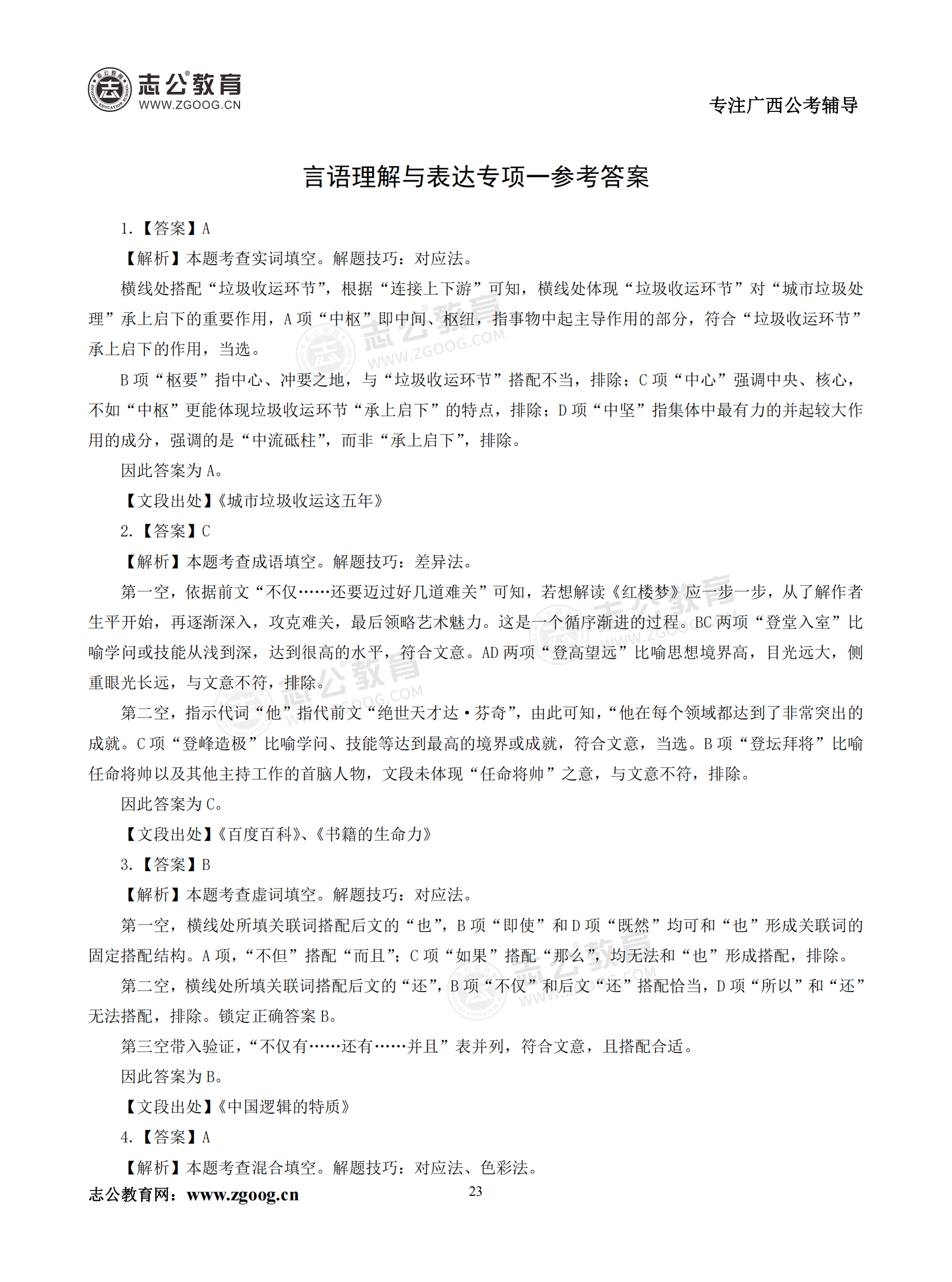 【公考模塊練習】言語理解題一(答案)