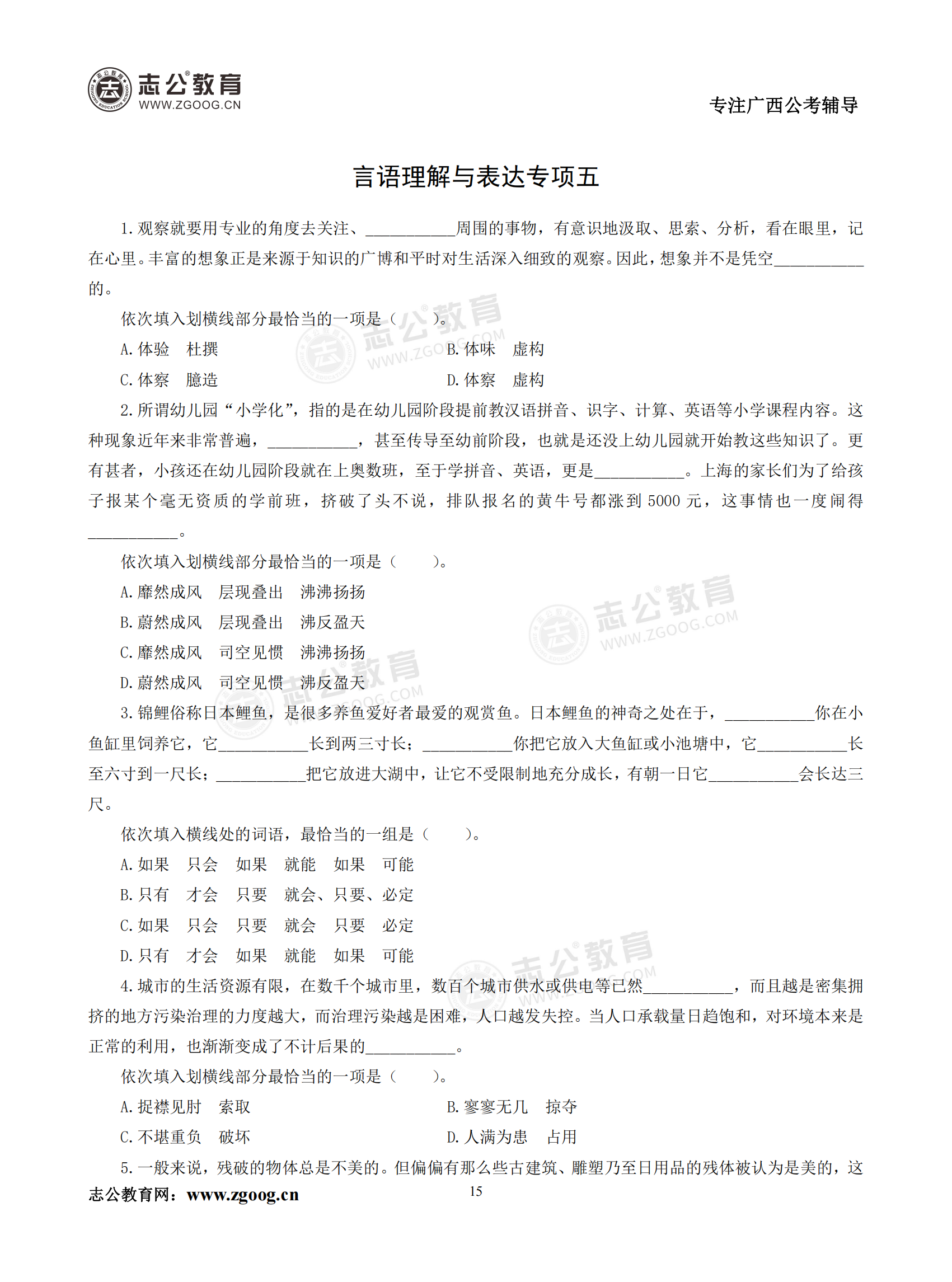 【公考模塊練習】言語理解題五(試題)