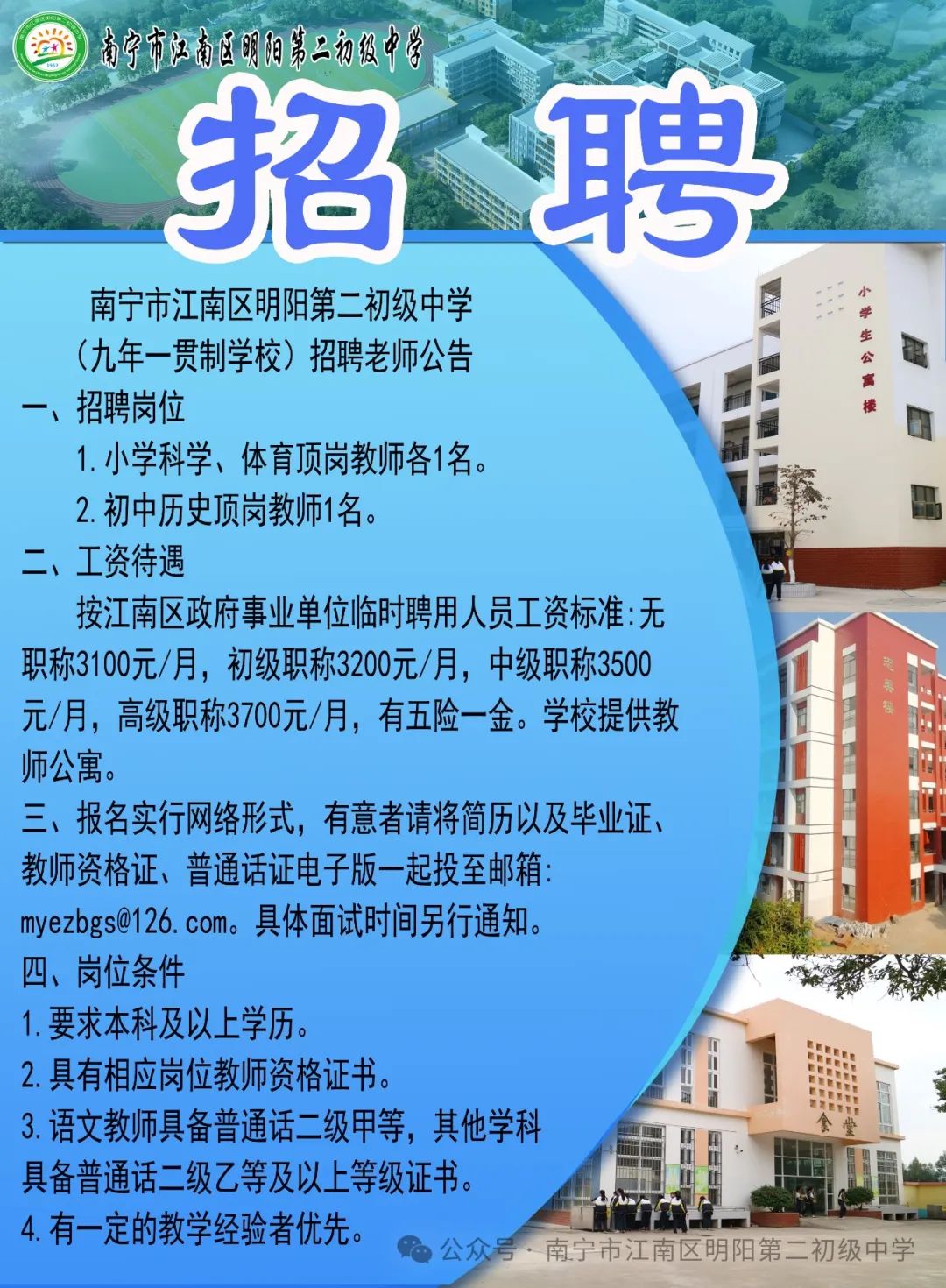 2025年南寧市江南區明陽第二初級中學招聘教師公告