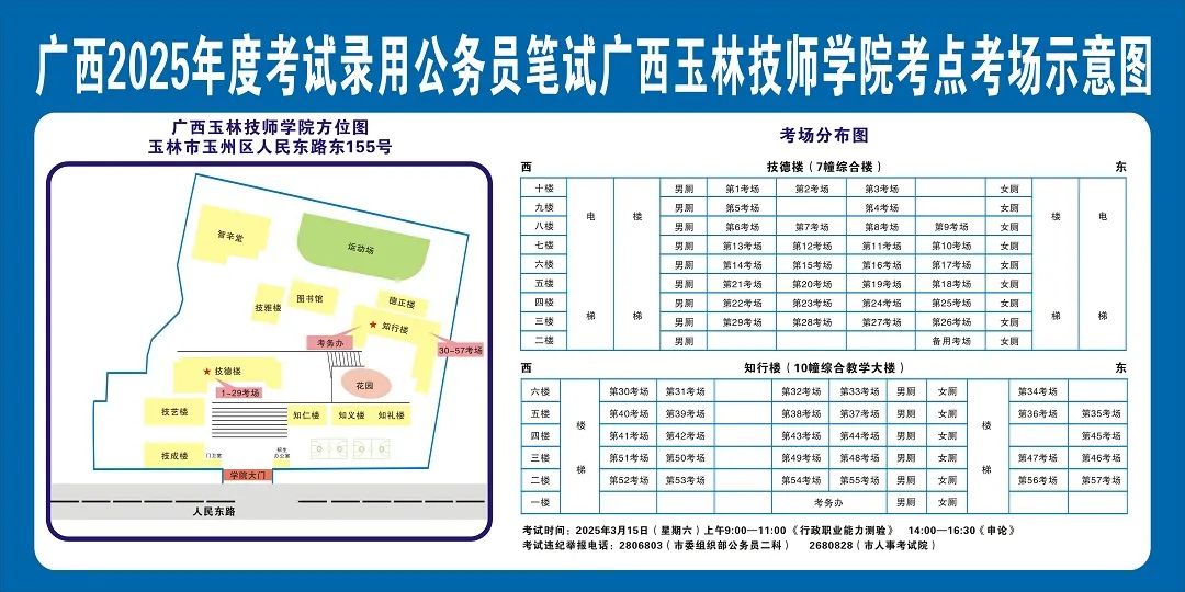 請(qǐng)及時(shí)登錄“廣西人事考試網(wǎng)”打印筆試準(zhǔn)考證并妥善保管,仔細(xì)查看準(zhǔn)考證上的考點(diǎn)信息。本次考試玉林市考區(qū)共設(shè)11個(gè)考點(diǎn),各考點(diǎn)名稱及地址如下: