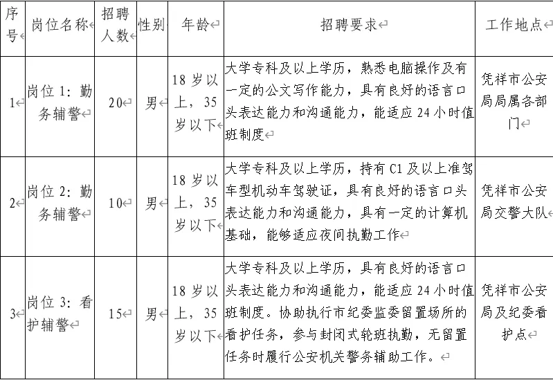 為適應憑祥市公安機關管理工作發展需要,憑祥市公安局決定面向社會公開招聘40名警務輔助人員(以下簡稱輔警)。具體事宜如下: