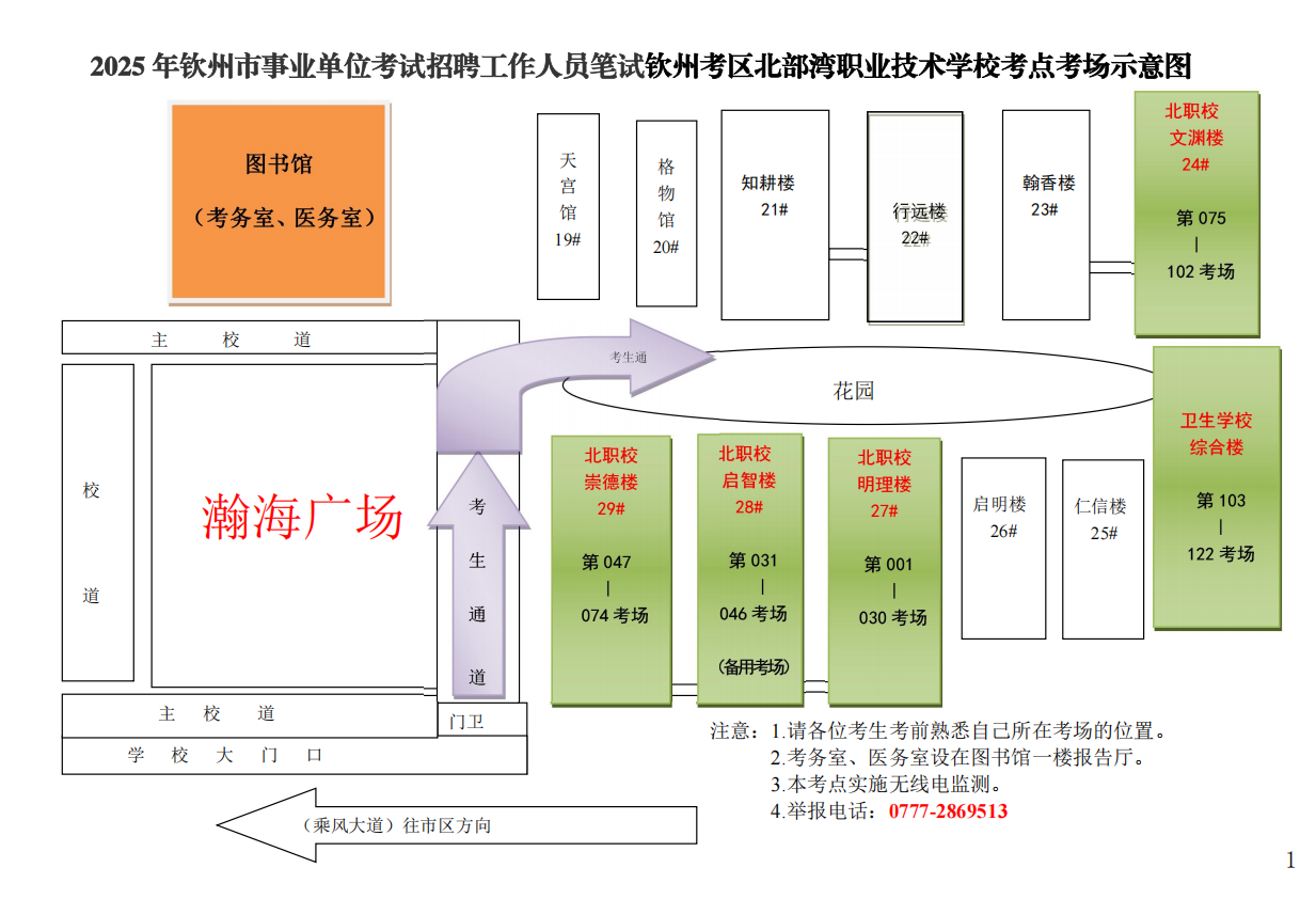 (二)請考生按照本人準考證上的考點學校,提前了解學校所在位置,特別注意不要混淆北部灣大學考點與北部灣職業技術學校考點。部分考點學校離市區有一定距離,請關注當天交通情況和天氣情況,充分考慮路途時間和天氣因素影響,提前謀劃出行時間、路線和交通工具,建議提前60分鐘到達考點,以免影響正常入場參加考試。