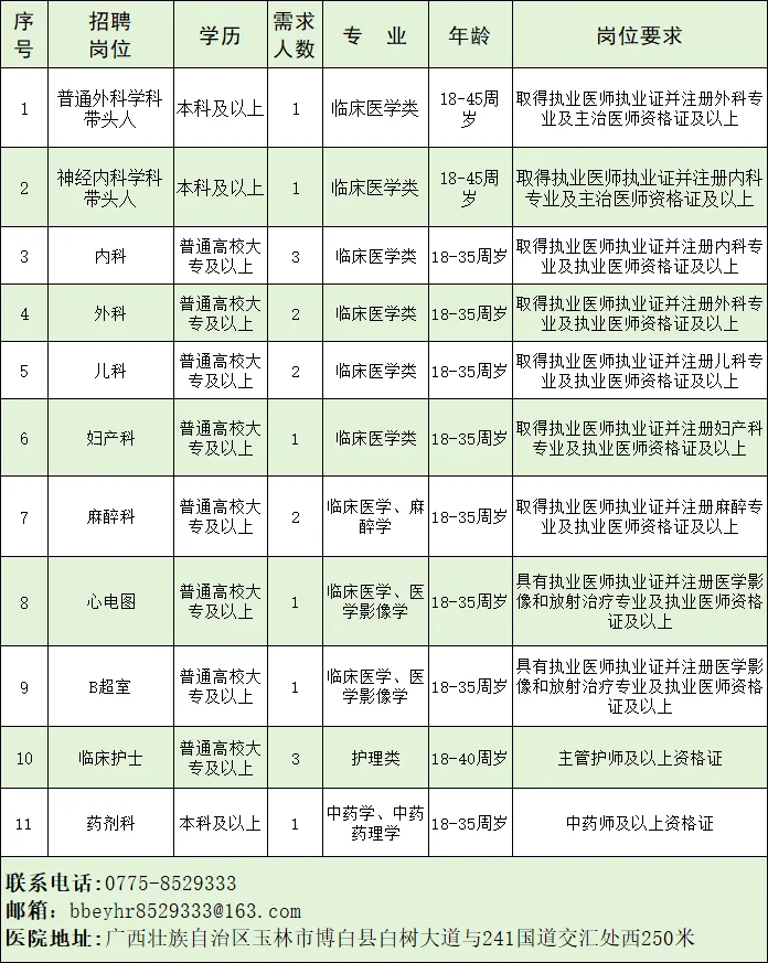 原文標題:博白縣第二人民醫院公開招聘,長期有效!