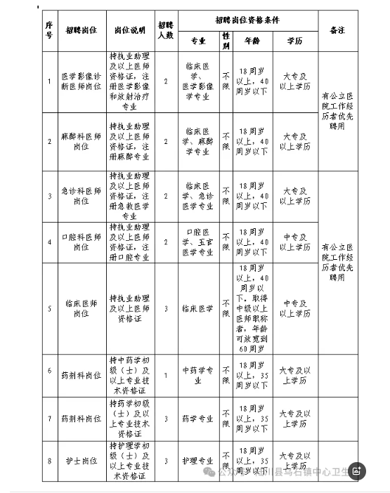 原文標題:陸川縣烏石鎮中心衛生院公開招聘編外人員公告