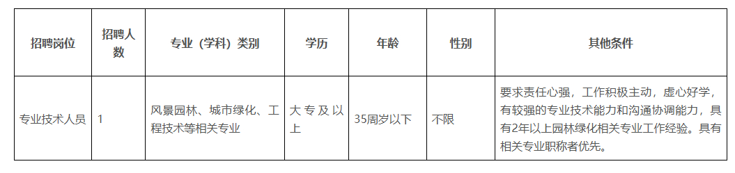 本次公開招聘相關崗位工作人員1名,具體招聘崗位、人數、資格條件如下: