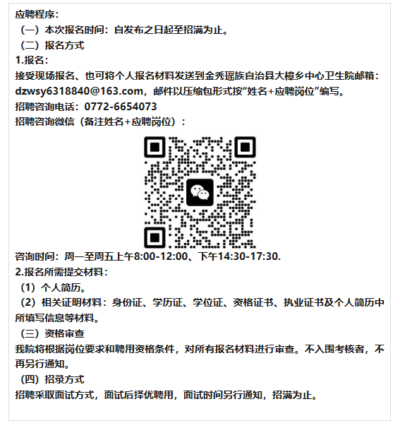 原文標題:金秀瑤族自治縣大樟鄉中心衛生院2025年公開招聘人才公告