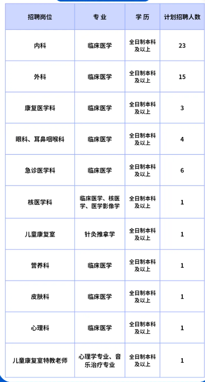 (二)原則上年齡不超過35歲,碩士學位或副高級職稱不超過45歲。急診科醫師崗位具有執業醫師資格證及執業醫師執業證的學歷可放寬到全日制大專及以上,年齡在40歲以下。