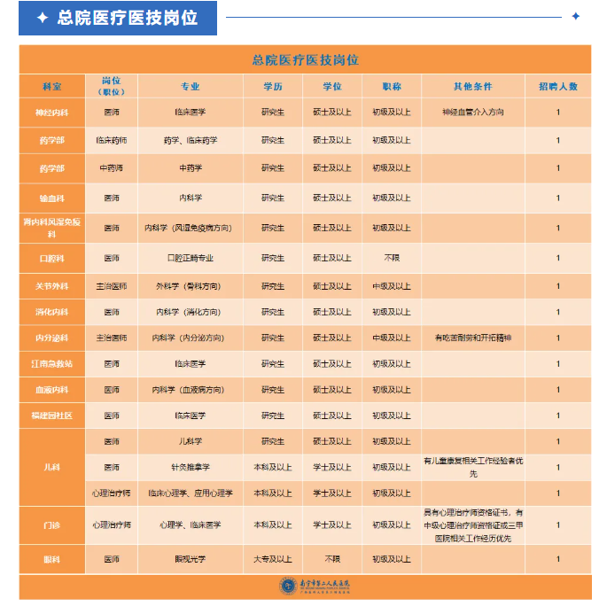 以上崗位均享受醫院科研獎勵、培訓進修、晉升職務職稱等權利,以及五險一金、用餐補助、帶薪年休假、工會福利等待遇。