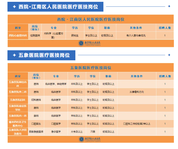 以上各類引進人才和團隊均須與醫院簽訂服務期限不少于五年的引進協議。若引進的高層次人才所學專業為南寧市衛健委年度緊缺專業,其人才引進經費可在核定標準基礎上上浮20%。