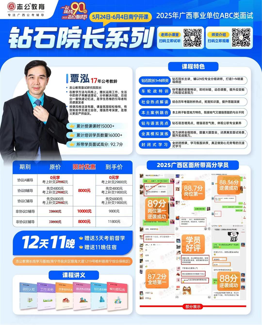 2025年廣西事業單位面試即將到來!面對激烈的競爭,志公教育重磅推出鉆石院長系列課程,分別由志公教育面試研究院院長覃泓院長和志公教育資深講師金孟老師主講,為考生提供面試提升方案,助力考生攻克難關!