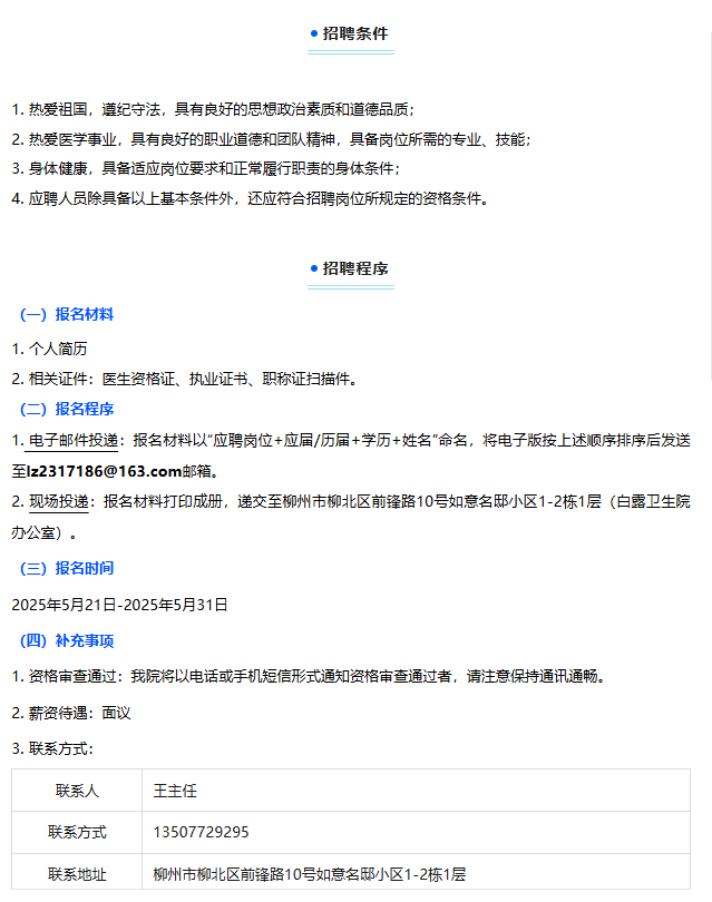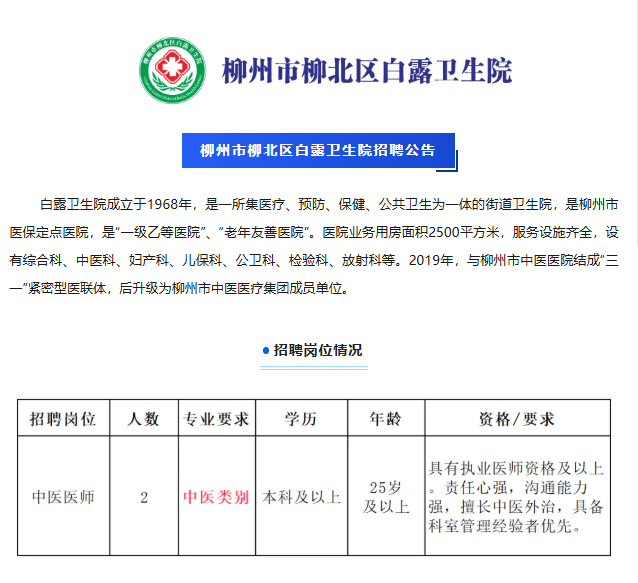 原文標題:2025年柳州市柳北區白露衛生院編外聘用衛生專業技術人員公告