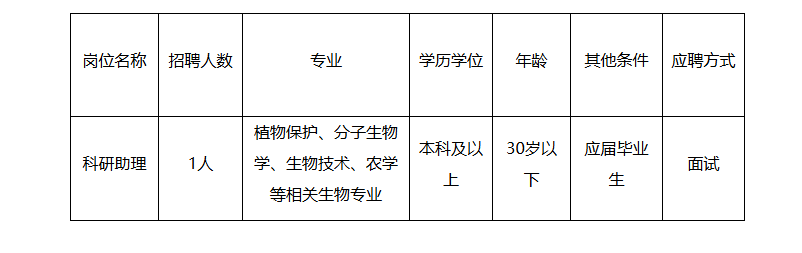 4.熱愛農業科研工作,具有良好的綜合素質、溝通能力、團隊合作能力及高度的責任心;