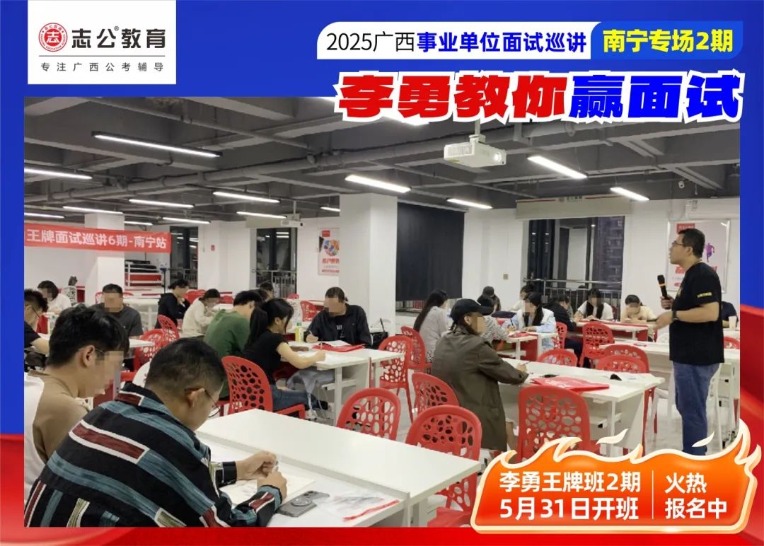 原文標題:燃爆!直擊2025廣西事業單位面試——5.26李勇教你贏面試線下巡講現場