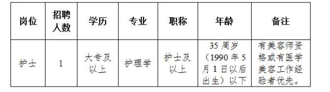 根據我院業務發展需要,現面向社會公開招聘護士1名。凡有意向到我院工作且符合報名條件者均可報名應聘,現將有關事項公告如下:
