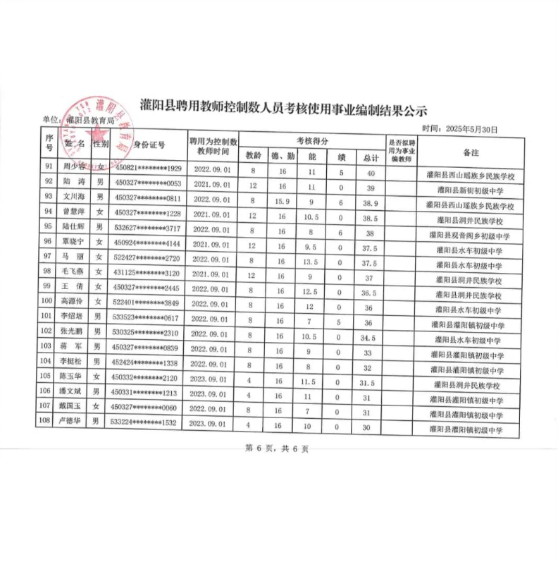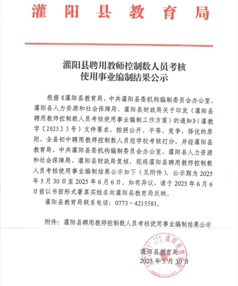 原文標題:灌陽縣聘用教師控制數人員考核使用事業編制結果公示