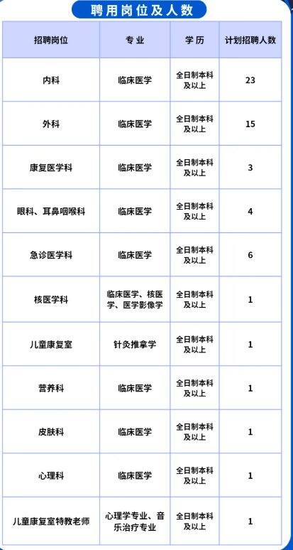 (二)原則上年齡不超過35歲,碩士學位或副高級職稱不超過45歲。急診科醫師崗位具有執業醫師資格證及執業醫師執業證的學歷可放寬到全日制大專及以上,年齡在40歲以下。