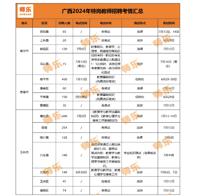 適用于廣西各區縣特崗筆試