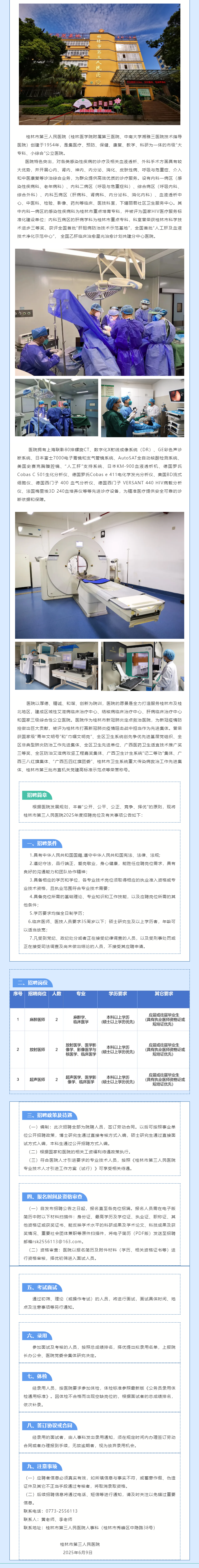 原文標題:最新丨桂林市第三人民醫院2025年度招聘公告