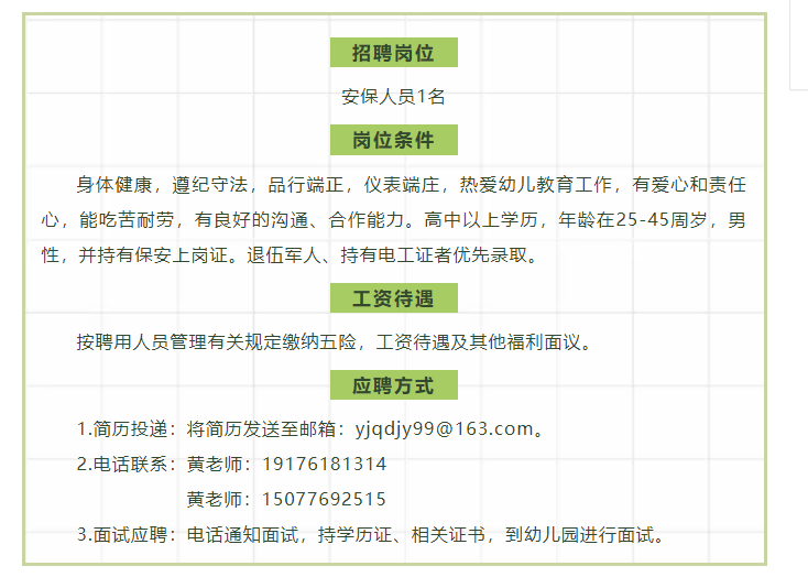 原文標題:百色市右江區第九幼兒園招聘安保人員公告