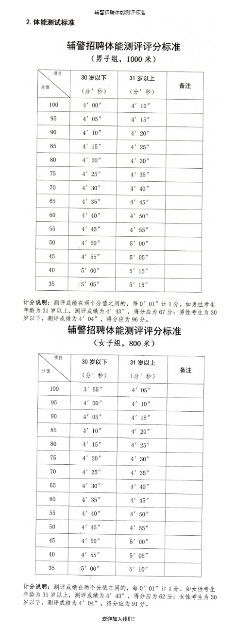 (一)體能測試。資格審查合格即可參加體能測試。