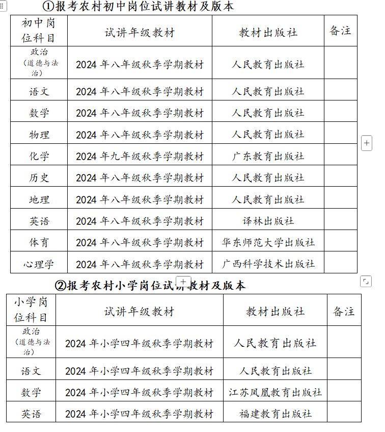 ①報考農(nóng)村初中崗位試講教材及版本