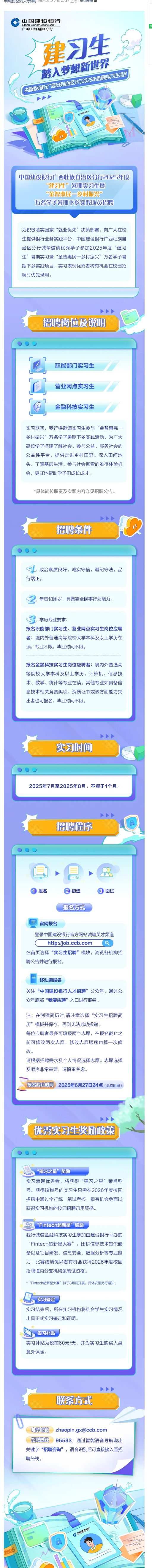 廣西 | 中國(guó)建設(shè)銀行廣西區(qū)分行2025年度暑期實(shí)習(xí)生招募