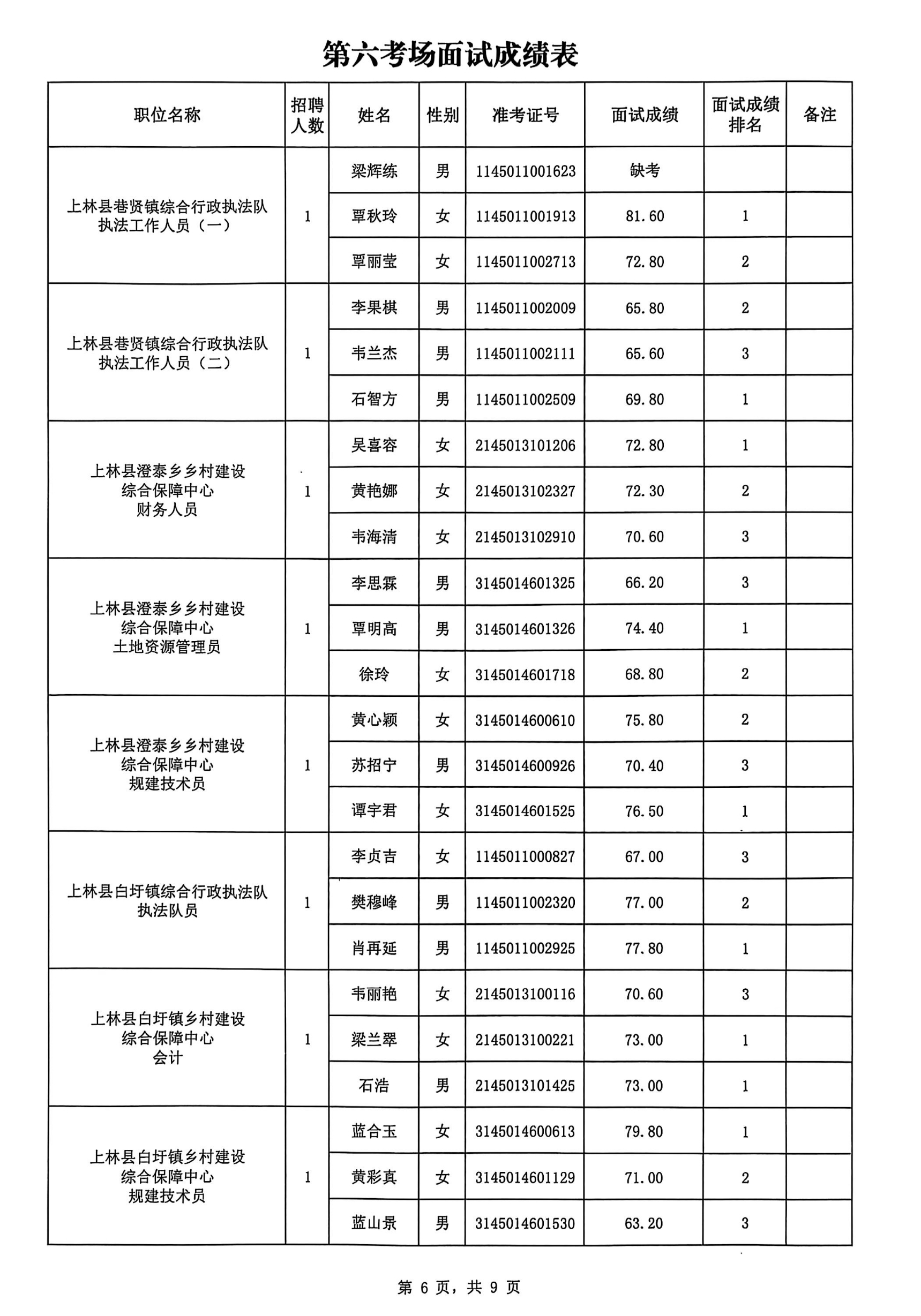 原文標題:上林縣2025年公開考試招聘事業單位工作人員面試成績