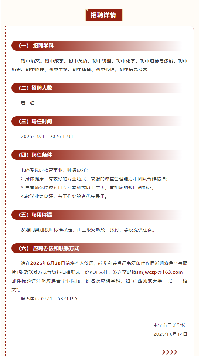 南寧市三美學(xué)校2025-2026學(xué)年臨聘教師招聘啟事