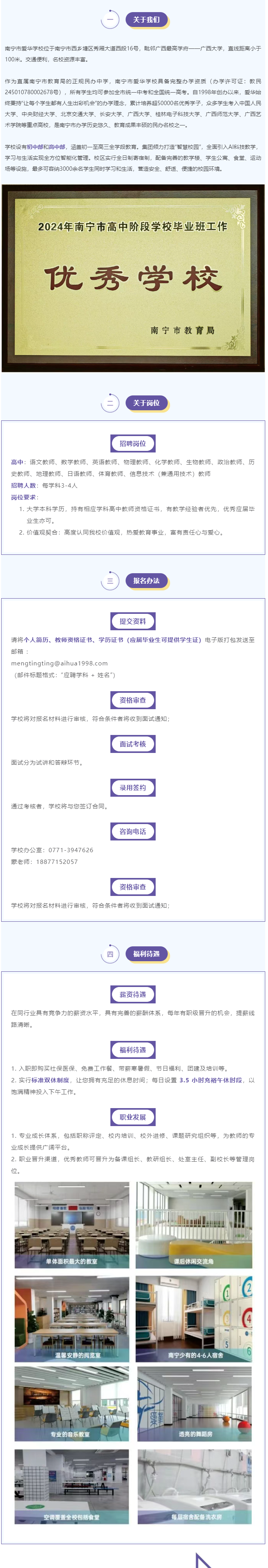 南寧市愛華學(xué)校2025年秋季學(xué)期高中教師招聘公告