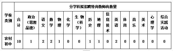 德保縣2025年計(jì)劃招聘初中特崗教師10名,具體科目計(jì)劃招聘人數(shù)詳見下表: