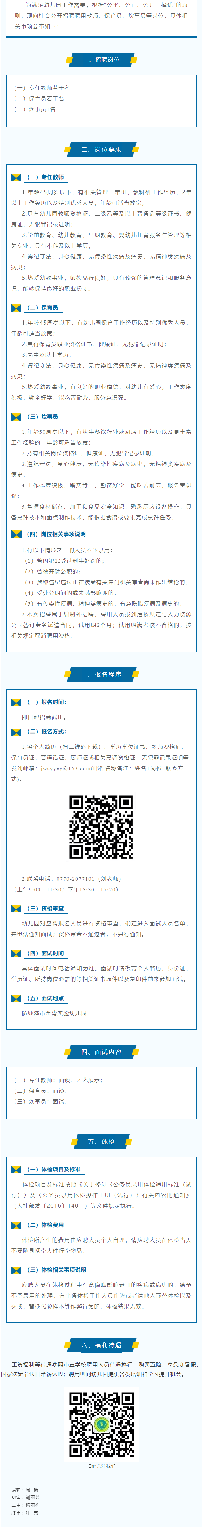 2025年防城港市金灣實驗幼兒園秋季學期聘用教師、保育員、炊事員崗位招聘公告