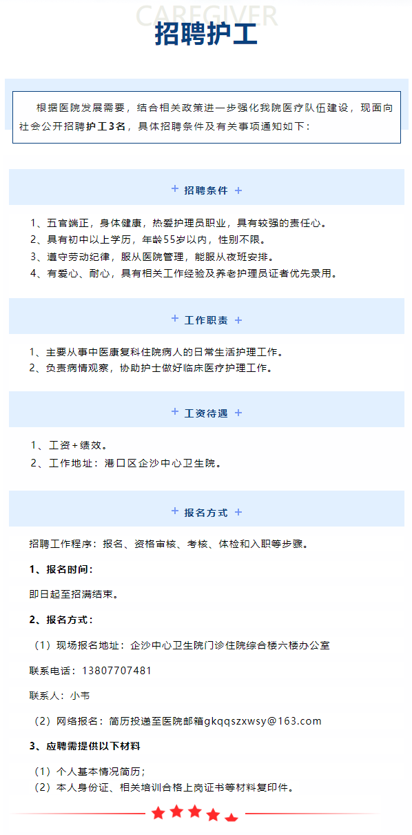 原文標題:港口區企沙中心衛生院招聘護工公告